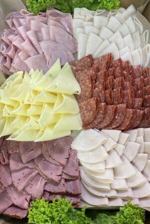 Price: $ 59.95 per portion $59.95 per platter (This platter is designed for pre-dinner nibbles not as a replacement meal!) Shaved Pastrami; Chicken Breast; Ham; Turkey Breast; Mild Salami; Maasdam Cheese Slices Allergens: Gluten Dairy